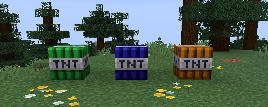 This is my first Minecraft mod, built for Java Edition 1.21.5. I kept the scope simple: add 3 new types of TNT, each with a different explosion behaviour.